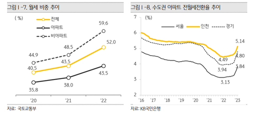 임대차시장의 불안요소도 해소해야 할 과제다. 지난해 하반기 전세대출 금리가 6%에 이르자 전세수요는 감소하고, 월세수요가 늘고 있다. 이로 인해 지난해 월세가격은 전년 대비 7.5% 올랐다. 금리 상승과 월세 전환 증가는 임대차 시장의 주요 수요층인 청년과 신혼부부, 소득이 낮은 고령가구 등 주거 취약계층의 주거비 부담으로 이어질 수 있다