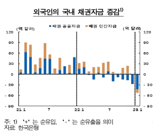 1월 외국인 채권자금유출…공공기관 투자여력, 신흥국 포트폴리오 조정 등 영향