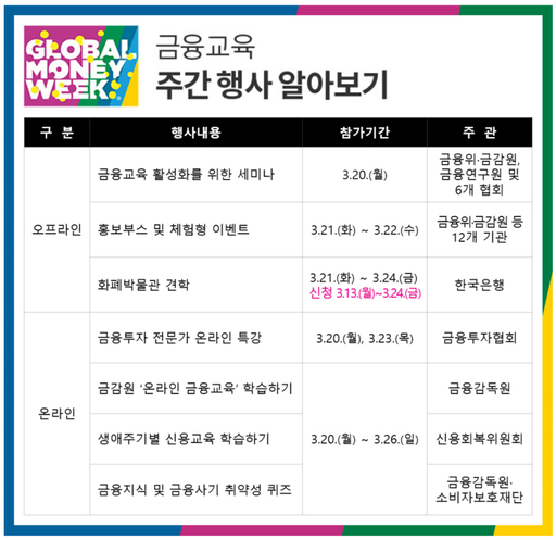 금융당국이 금융교육에 대한 인식을 제고하기 위해 오는 26일까지 7일간 '경제협력개발기구(OECD) 국제 금융교육 주간 행사'를 진행한다.