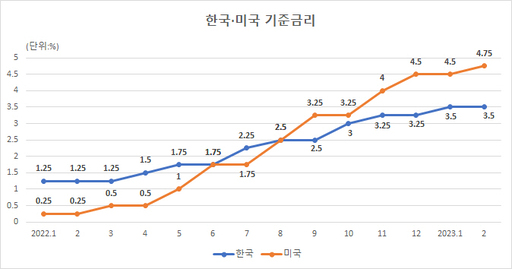 지난해 미국연방준비제도(Fed)는 40년만에 최악의 인플레이션을 잡기 위해 금리인상에 나섰다. 한국은행도 금리 역전차를 막기 위해 금리인상에 속도를 냈다.