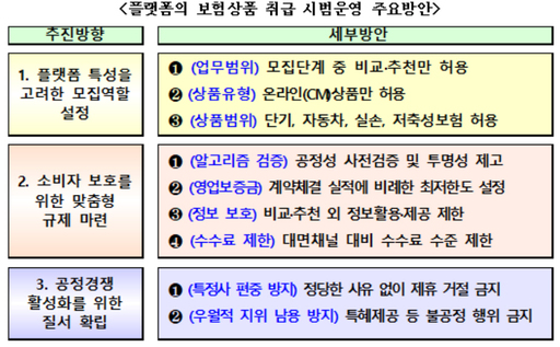 아울러 금융당국은 보험상품 비교·추천 플랫폼이 투명하게 운영될 수 있도록 코스콤을 통해 알고리즘의 적정성을 사전 검증한다.