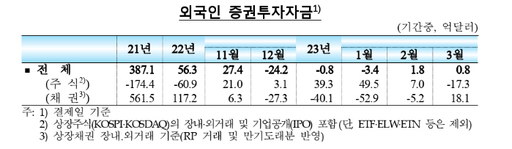 한국은행 관계자는 "SVB, CS 사태등의 영향으로 위험회피심리가 강화되며 순유출로 전환했다"고 설명했다.