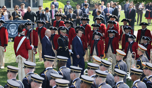 21발의 예포 발사가 시작되고 곧이어 애국가와 미국 국가가 차례로 연주됐다. 이어 윤 대통령과 바이든 대통령은 연단 아래로 내려가 의장대 사열을 받은 뒤 연단으로 복귀해 환영사와 답사를 했다.