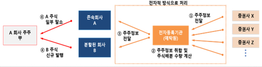 기업의 분할·분할합병시 전환사채(CB)와 신수인수권부사채(BW), 신주인수권증권(WR) 등도 전자등록기관이 투자자정보를 처리할 수 있도록 한다. 현재 주식은 전자등록기관이 투자자정보를 받고 있어, 기업분할 시 주주 일부를 말소하고 분할된 회사 주식을 신규 배정할 수 있지만, CB·BW·WR 등은 투자자정보를 받을 근거가 없어 분할·합병시 수작업으로 증권을 전환해야 한다. 분할합병시 발생하는 불필요한 비용을 줄이겠다는 것이다.