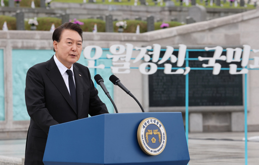 윤 대통령은 "우리는 모두 오월의 정신으로 위협과 도전에 직면한 우리의 자유민주주의를 지키고 실천하며 창의와 혁신의 정신으로 산업의 고도화와 경제의 번영을 이뤄내야 한다"며 "그것이 오월의 정신을 구현하는 길이고 민주 영령들께 보답하는 길"이라고 강조했다.