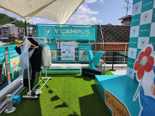 홍대입구역에서 연남동 골목으로 들어서 '연트럴파크'를 10분 넘게 걷다가 한 골목에 들어섰다. KT에서 19일부터 28일까지 10일동안 운영하는 민트색 건물의 팝업스토어 'Y캠퍼스'가 눈에 띄었다. 캠퍼스 앞에서는 잔디광장과 카페트럭에 자리잡고 있으며, 학생들에게 아메리카노와 카페라테를 나눠주고 있었다.