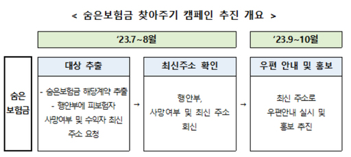 금융위는 보험업계와 함께 오는 9월부터 숨은보험금 찾아주기 캠페인을 통해 최신주소로 안내우편도 발송할 예정이다.