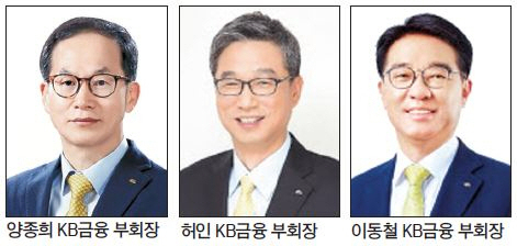 차기 회장으로 가장 유력한 후보는 부회장 3인이다. 앞서 윤 회장은 2021년 말 조직개편을 통해 양종희 부회장과 허인 부회장, 이동철 부회장을 선택하고, 2022년 담당 업무를 바꿔 다양한 역할을 경험하게 했다.