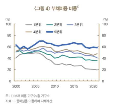 다만 자산 상위가구의 부채조달은 주택담보인정비율(LTV)·총부채상환비율(DTI) 등 주택담보대출의 규제강화로 감소했다.