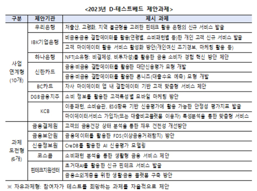 앞서 금융위원회는 혁신아이디어를 배출하기 위해 연1회이던 모집회수를 상·하반기 2회로 늘렸다. 지금까지 D-테스트베드에 참여한 팀은 2021년 20개팀, 2022년 31개팀, 2023년 상반기 14팀 등 총 65팀이다.