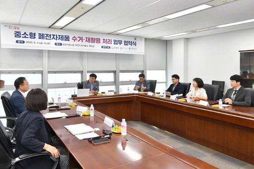 성남시(시장 신상진)는 4일 오후 2시 한국환경공단, E-순환거버넌스와 중소형 폐전자제품 수거 및 재활용 처리를 위한 사물인터넷(IoT) 수거함 시범사업 업무협약을 체결했다고 밝혔다.