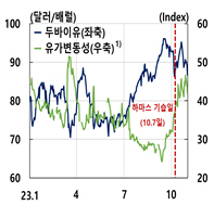 향후 물가흐름은 지난 8월 전망 경로를 웃돌것으로 예상했다. 이스라엘·하마스 사태로 석유류 가격은 90달러를 웃도는 등 변동성이 커지고 있기 때문이다.