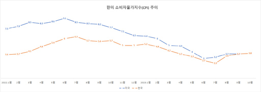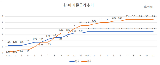 이상형 한국은행 부총재보는 "추가 금리인상에 대한 시장의 우려가 일부 완화됐지만 연준이 인플레이션 목표달성을 위한 긴축기조 유지 필요성(고금리 장기화)을 일관되게 피력하고 있다"며 "통화정책 긴축기조가 장기화하는 등 불확실성 요인이 국내외 금융·외환시장에 미치는 영향에 유의해 모니터링 하겠다"고 했다.