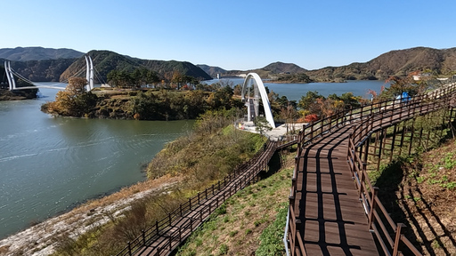 두 번째 다리인 용두교는 길이가 150m에 달하는 현수교 형태다. 섬과 연결된 용천루 출렁다리를 통해 영주호를 한 눈에 볼 수 있다. 햇빛에 비치어 반짝이는 잔물결을 바라보고 있으니 도시에서의 걱정이 사그라진다.