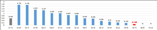 이뿐만 아니라 경기도 내에서도 시군구에 따라 활동의사수의 편차가 심각하게 나타나고 있다. 실제 활동의사수가 가장 많은 성남시의 경우 인구천명당 활동의사수가 3.61명인 반면, 과천 0.71명, 광주 0.81명, 안성 1.12명으로 경기도 내에서도 최대 5배이상 차이가 나고 있다.