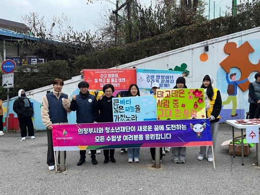 또 수능이 끝나는 오후 4시부터는 '의정부시청소년상담복지센터와 학부모지원단, 1388청소년지원단'이 연합해 수능 이후 발생할 수 있는 수험생 청소년들의 다양한 고민과 문제들을 해결해주기 위한 심리지원 아웃리치를 운영해 지지와 격려의 마음을 전했다.