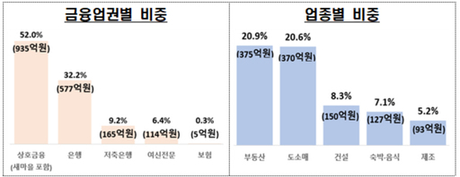 업종별로는 부동산업과 도·소매업이 각각 20.9%, 20.6%며 ▲건설업(8.3%) ▲숙박 및 음식점업(7.1%) ▲제조업(5.2%) 등의 순이다.
