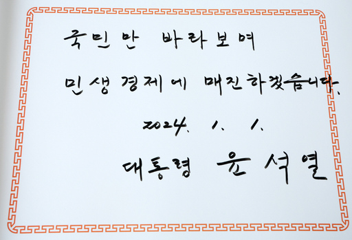 이어서 윤 대통령은 방명록에 "국민만 바라보며 민생경제에 매진하겠습니다"라고 적은 후 참석자들과 인사를 나누고 이동했다.