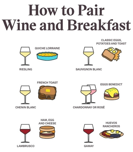 잘 구운 토스트와 계란, 감자 요리 등 전형적인 아메리칸 브렉퍼스트라면 소비뇽 블랑이다. 과일의 느낌과 적정한 산도로 음식과도 잘 어울리지만 깔끔함으로 낮술로 먹기에 부담스럽지 않다. 버터향 가득한 프렌치토스트엔 열대과실향에 청량감을 같이 느낄 수 있는 신세계 슈냉블랑이다.