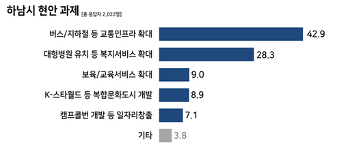 ▶ 하남시 현안 과제 1위는 '교통인프라'···복지서비스 > 보육·교육서비스 순