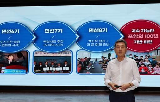 포항시는 이러한 성과들을 바탕으로 ▲신산업 중심 고부가가치의 지식 산업도시 ▲탄소중립과 기후변화에 대응하는 친환경·에너지허브도시 ▲지방소멸 시대를 극복하고 최고의 정주여건을 갖춘 균형발전 거점도시 ▲즐거움과 행복이 가득한 해양문화관광도시 ▲대한민국을 대표하는 국제 거버넌스 도시로 포항의 미래를 완성한다는 방침이다.