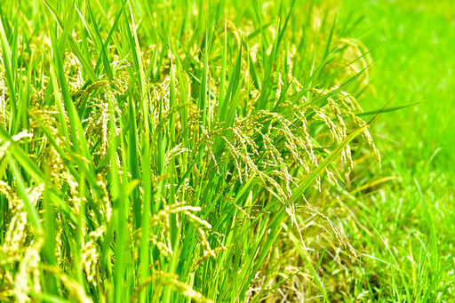 ▲ 화양면 백초마을 들녘에 일반 벼보다 추수가 빠른 조생종 벼가 폭염에도 알알이 영글고 있다.