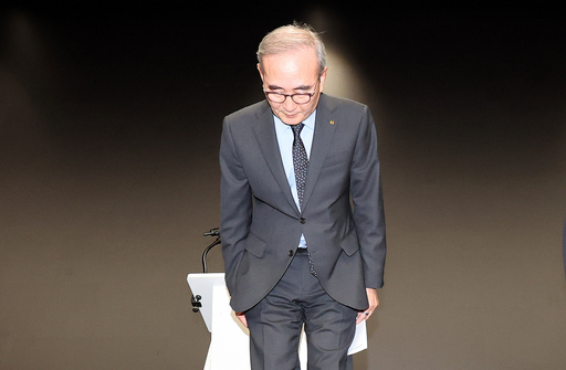김영섭 KT 대표이사가 11일 오후 서울 종로구 KT 광화문 West 사옥에서 소액결제 피해 관련 기자 브리핑에 앞서 고개숙여 사과를 하고 있다. / 손진영기자 son@