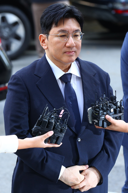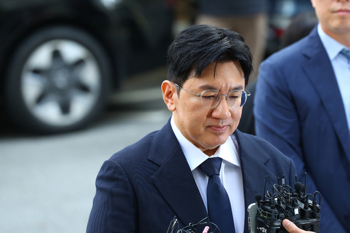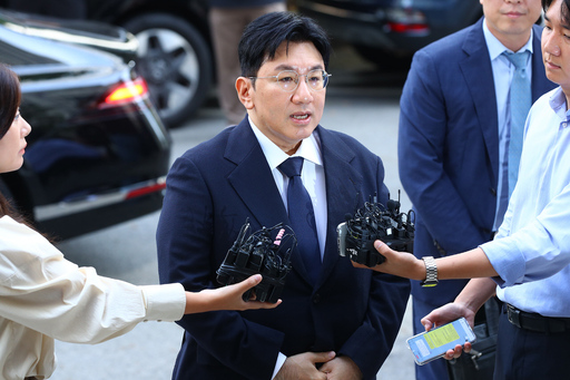 부당이득 혐의를 받고 있는 방시혁 하이브 의장이 15일 서울 마포구 서울경찰청 광역수사단 청사에 출석하고 있다.