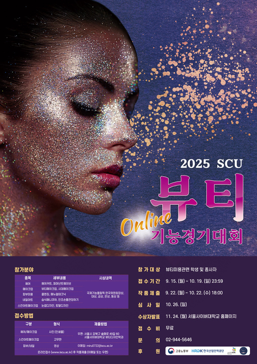 서울사이버대학교 뷰티디자인학과(학과장 이해미루)는 오는 10월 26일 '2025 SCU 뷰티 온라인 기능경기대회'를 개최한다고 15일 밝혔다. 이번 대회는 우수한 뷰티 기술을 보유한 인재 발굴과 K-뷰티 산업의 저변 확대를 목표로 마련됐다.