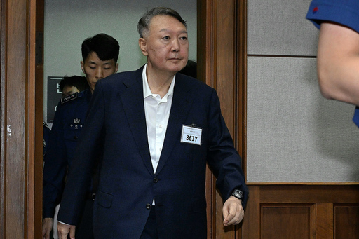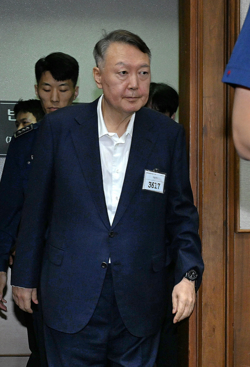 특수공무집행방해, 직권남용권리행사방해 등으로 추가 기소된 윤석열 전 대통령이 26일 오전 서울 서초구 서울중앙지법 서관 417호에 구속 후 처음이며 동시 처음 중계되는 자신의 공판에 출석하고 있다.