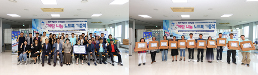 서울사이버대학교가 통일디딤돌연구원 학습지원센터, 동아리 '레크리조이플저니'(회장 이미애)와 함께 27일 북한이탈주민 신·편입생을 위한 노트북 기증식을 열었다고 30일 밝혔다. 레크리 기부마켓 수익금으로 마련한 노트북 10대가 전달됐다.