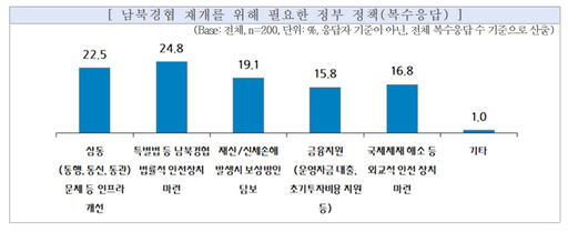 이외에 북한 인력이 남한으로 통근하는 '남한내 접경지역 경제특구'(21%)가 필요하다는 의견도 있었다.