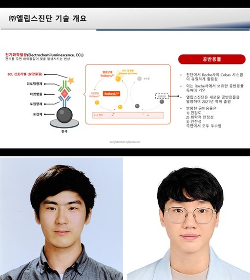 이 기술에서 빛 신호 생성을 위해서는 '공반응물(Coreactant)'이라는 특별한 화학물질이 필수적이다. 1990년 tri-n-propylamine(TPrA)이 학계에 처음 보고된 이후, 이 물질은 지난 35년간 사실상 유일한 선택지였다. 글로벌 진단기업 로슈진단(Roche Diagnostics)이 TPrA 특허를 바탕으로 지난 20여 년간 전 세계 시장을 독점해 왔다. 로슈진단은 2020년 기준 체외진단 부문에서만 42억 달러(약 6조 원)의 매출을 올리며 전 세계 시장 점유율 1위를 유지하고 있다. 국내에서도 주요 대학병원과 종합병원 중앙검사실에 로슈진단의 TPrA가 독점적으로 공급되며 기술 종속 상태가 지속됐다.