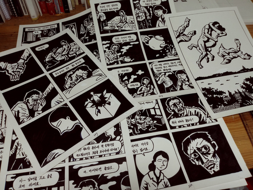 박 작가의 작품은 대부분은 흑백이었다. "처음엔 단순하게 비용의 문제였다. 컬러 인쇄비가 두 배가 높았기 때문이다"라며 웃었다.