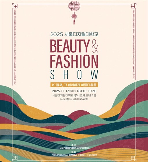 서울디지털대학교(총장직무대행 이영수) 뷰티미용학과가 오는 13일 오후 6시부터 '서울디지털대학교 강서캠퍼스 1층 로비에서 '2025 SDU 뷰티&패션쇼'를 개최한다고 10일 밝혔다.행사는 서울디지털대 공식 유튜브 채널을 통해 실시간 라이브 생중계된다.