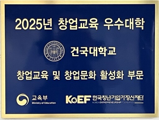 건국대학교(총장 원종필)가 '2025년 창업교육 우수대학'으로 선정되어 '창업교육 및 창업문화 활성화' 부문 교육부장관상 표창을 수상했다고 19일 밝혔다.