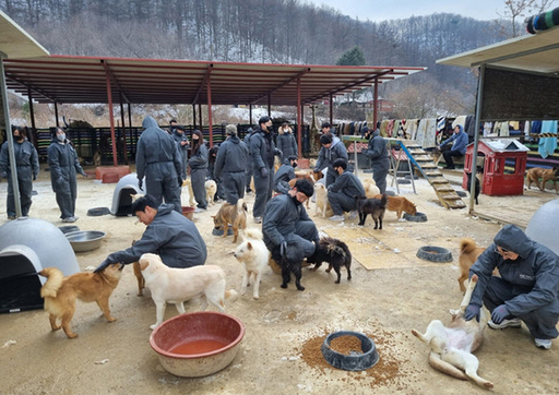2023년 12월과 지난해 12월 혹한기를 앞두고 사료 2톤을 쾌척해 보호소의 월동 준비를 도운 데 이어 최근에는 3000만원 상당의 사료를 추가로 기부하며 지원 사격에 나섰다. 단순한 물품 전달에 그치지 않았다. 이마트와 하림펫푸드 임직원 40여 명은 직접 팔을 걷어붙이고 현장을 찾았다.