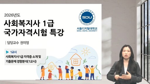 서울디지털대학교(총장직무대행 이영수) 사회복지학과가 '2026년 사회복지사 1급 국가시험 대비 온라인 특강'을 공개했다.