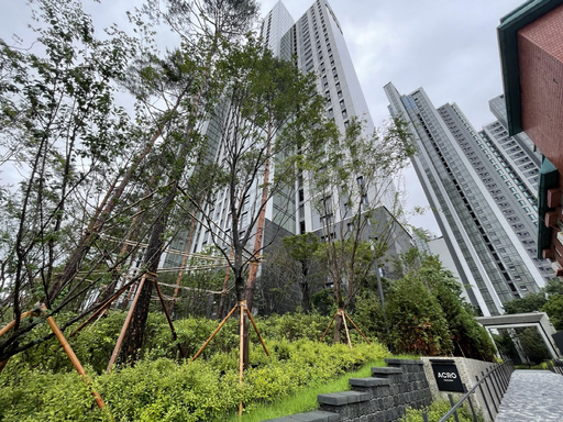 단지 중앙에는 수경시설과 어우러진 '가든 스퀘어'가 조성돼 있다. 넓게 펼쳐진 잔디 마당을 중심으로 양쪽에 정돈된 식재와 석재 디딤 공간이 배치돼 입주민 누구나 자유롭게 거닐고 머물 수 있도록 설계됐다.