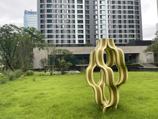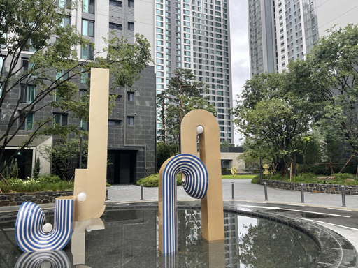 김용관 작가의 '대칭행렬' 조각상들도 단지의 정갈함을 나타낸다. 여러 모듈을 무작위로 쌓아 올리고 그 과정에서 발견한 패턴을 규칙으로 삼아 다시 쌓기를 반복해 만들었다.