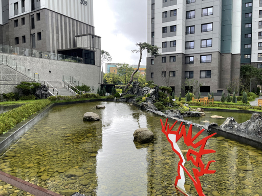붉은 조형물 무드셀라는 세계에서 가장 오래된 나무 중 하나인 '무드셀라'에서 영감을 받았다. 4850년의 생명을 이어온 나무로 입주민의 건강과 장수를 기원하는 의미를 담고 있다.