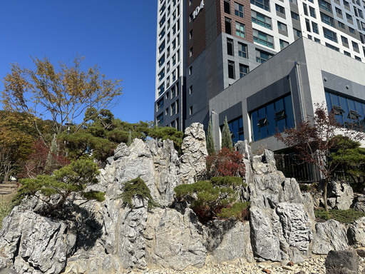 벽화에서 단지 입구쪽으로는 가면 웅장한 자연의 경관을 그대로 옮겨와 조성한 석가산이 나온다. 기암괴석과 조화로운 수목이 공존하는 공간에서 산수화 같은 자연풍경을 감상할 수 있다. 조경혁신 부문에서 높은 점수를 받았다.