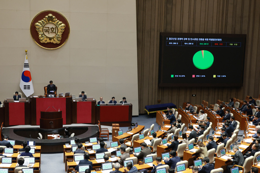한편, 본회의 마지막 안건으로 지난해 12월3일 윤석열 전 대통령의 불법적인 비상계엄 선포 때 계엄해제 표결을 고의로 방해했다는 혐의를 받는 추경호 전 국민의힘 원내대표의 체포동의안은 표결 끝에 총 투표 180인, 찬성 172인, 반대 4인, 기권 2인, 무효 2인으로 가결됐다.