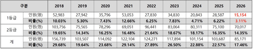 표준점수 최고점자 수 역시 크게 줄었다. 국어 최고점자는 261명으로 전년(1055명) 대비 75.3% 감소했고, 수학 최고점자는 780명으로 전년(1522명) 대비 48.8% 줄었다.