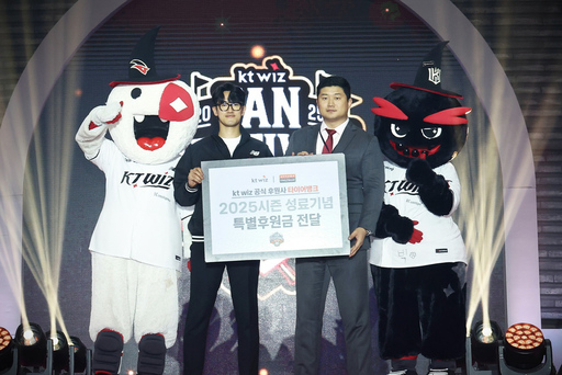 타이어뱅크는 지난 2일 kt wiz가 팬들을 위해 마련한 '팬 페스티벌' 현장에 방문해 선수단을 위한 특별 후원금을 전달했다. 이번 특별 후원금은 kt wiz와 10년간 함께해온 타이어뱅크가 2025시즌 동안 고생한 모든 선수들의 노고를 격려하기 위함이다. 또 다가올 2026시즌에도 좋은 경기력을 이어갈 수 있도록 응원하는 의미가 담겼다.