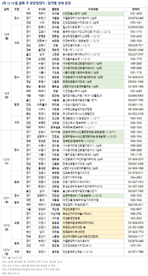 7일 부동산R114에 따르면 12월 둘째 주에는 전국 10개 단지 총 1만2가구가 공급된다. 일반분양 물량은 3646가구다.