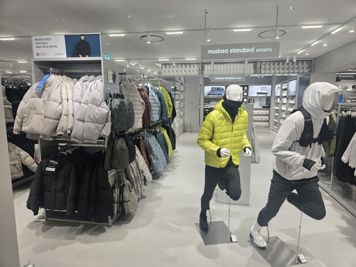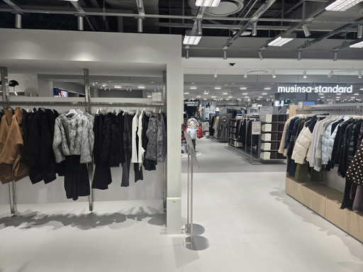 발걸음을 옮겨 회색 바닥의 '무신사 스탠다드' 구역으로 들어섰다. 이곳은 단순한 의류 매장을 넘어 라이프스타일 전반을 아우르는 공간이다. 남성, 여성 의류는 물론이고 키즈, 뷰티, 스포츠 라인까지 무신사 스탠다드가 보유한 모든 카테고리가 집결해 있었다. '무신사 스탠다드 홈' 존은 패션에 관심 많은 고객의 라이프스타일을 겨냥해 헤어드라이어, 섬유 유연제, 이염 방지 시트 등 실용적인 생활용품을 비치해 브랜드의 확장성을 보여주었다.