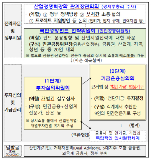 우선 국민성장펀드는 투자심의위원회와 기금운용심의회의 두단계의 의사결정구조를 거친다.