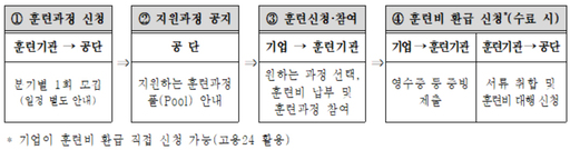 참여를 원하는 경우 고용보험 홈페이지나 고용·산재보험 토탈서비스에서 소속 기업이 우선지원대상기업인지 확인한 뒤, 공단 누리집에 공개된 훈련과정 중 원하는 과정을 선택해 훈련기관에 문의하면 된다. 훈련 수료 후에는 영수증과 수료증만 제출하면 훈련비를 환급받을 수 있다.