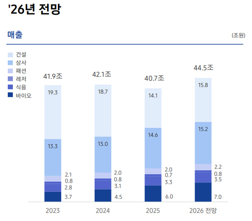2026년 건설부문 매출 전망치는 15조8000억원으로 잡았다. 작년 대비 10% 이상 증가한 수치다. 건설부문 매출은 지난 2023년 19조3000억원에서 2024년 18조7000억원, 2025년 14조1000억원으로 3년 연속 감소한 바 있다.